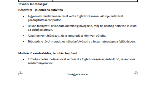 ✔️ További mintaszövegek – gyors kitöltéshez sablonok, differenciált visszajelzésekkel